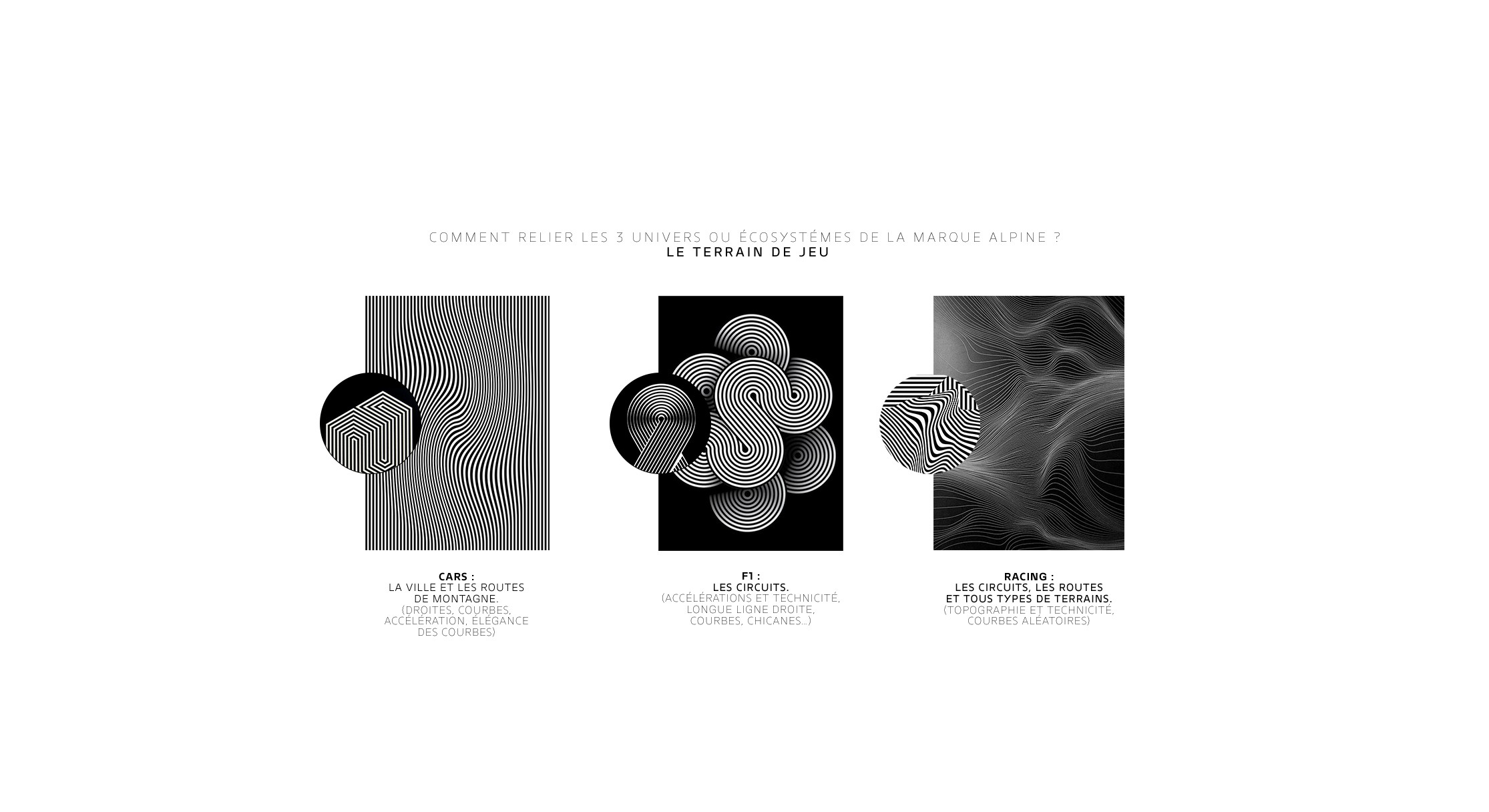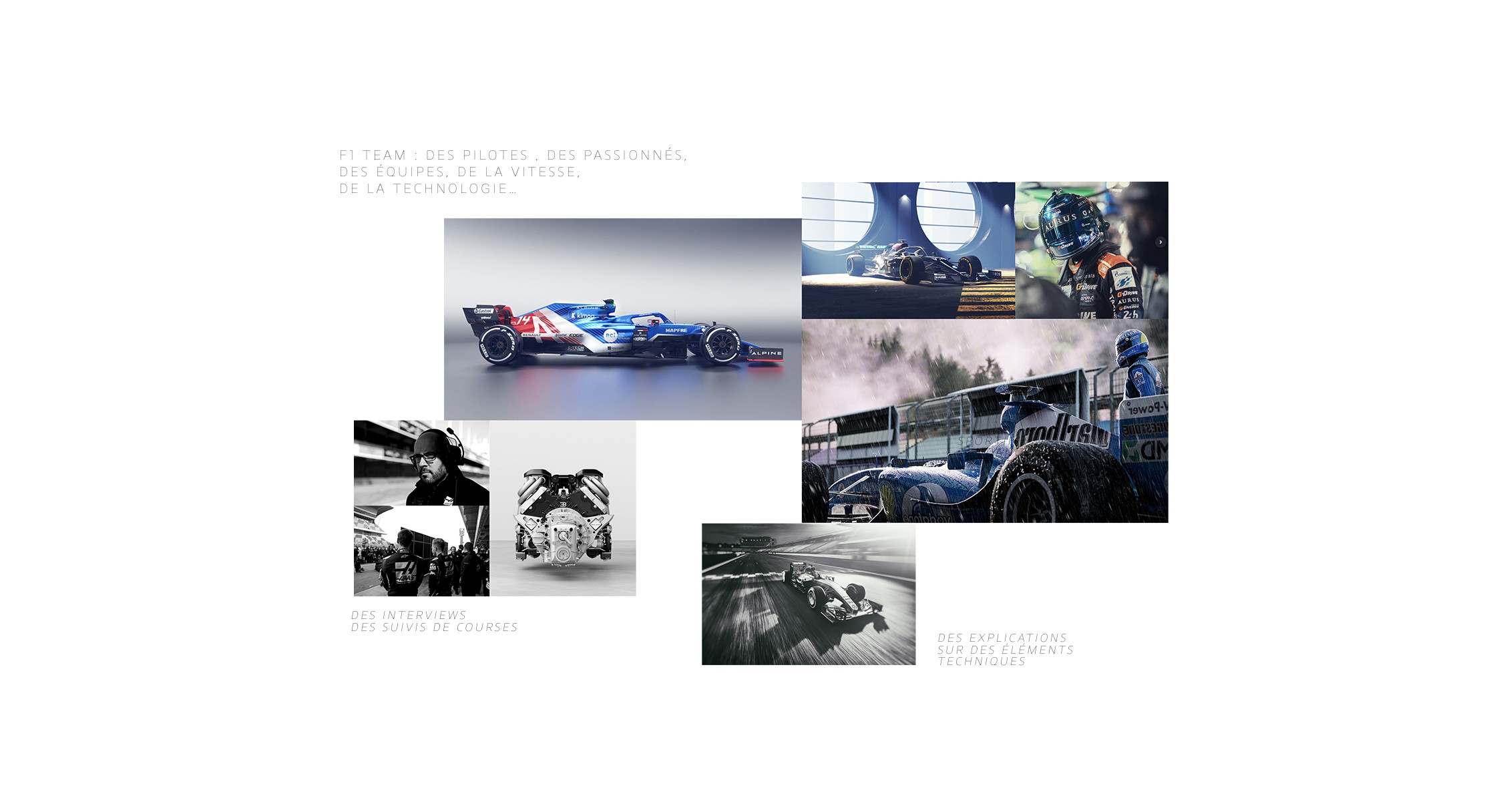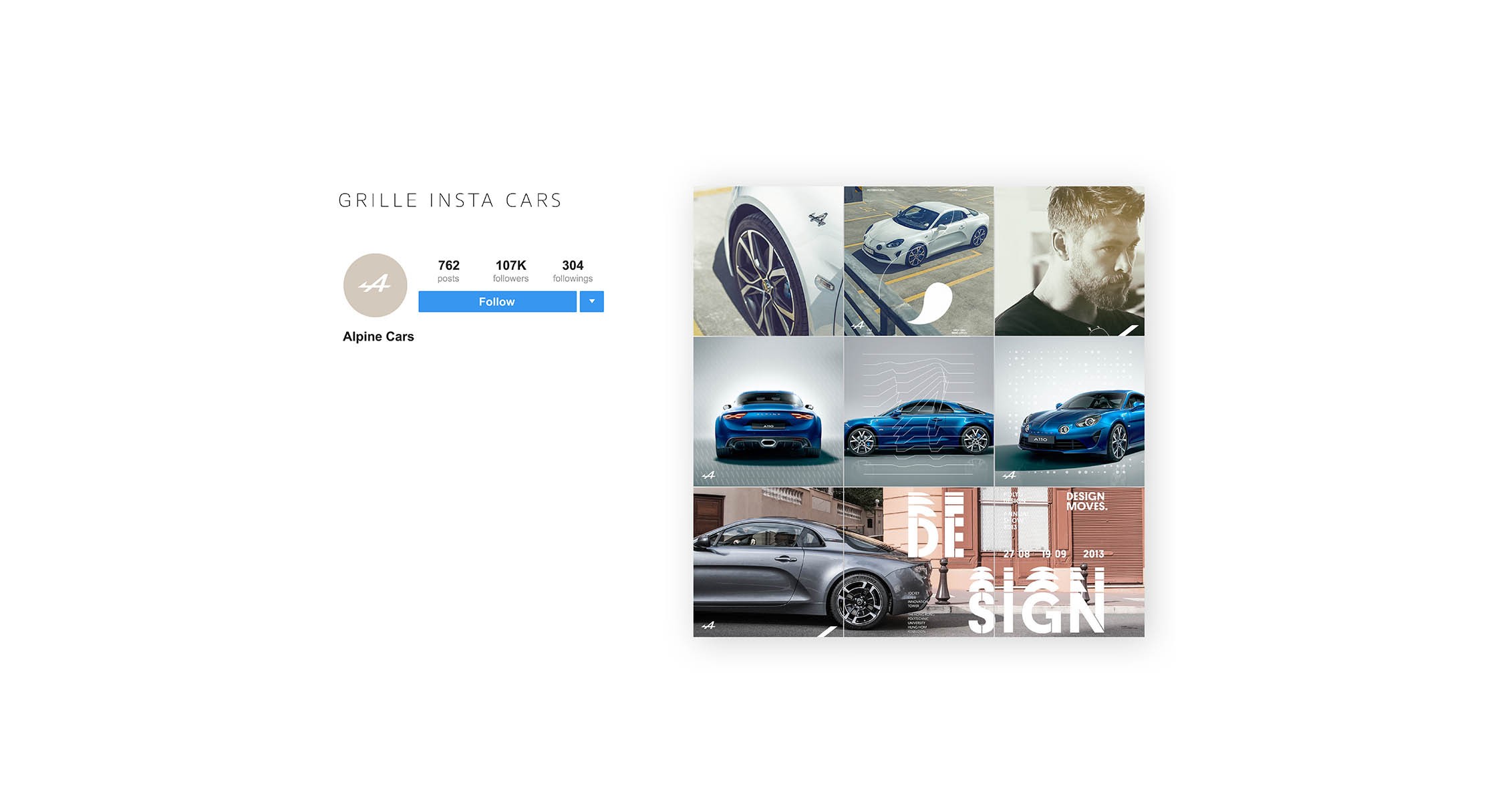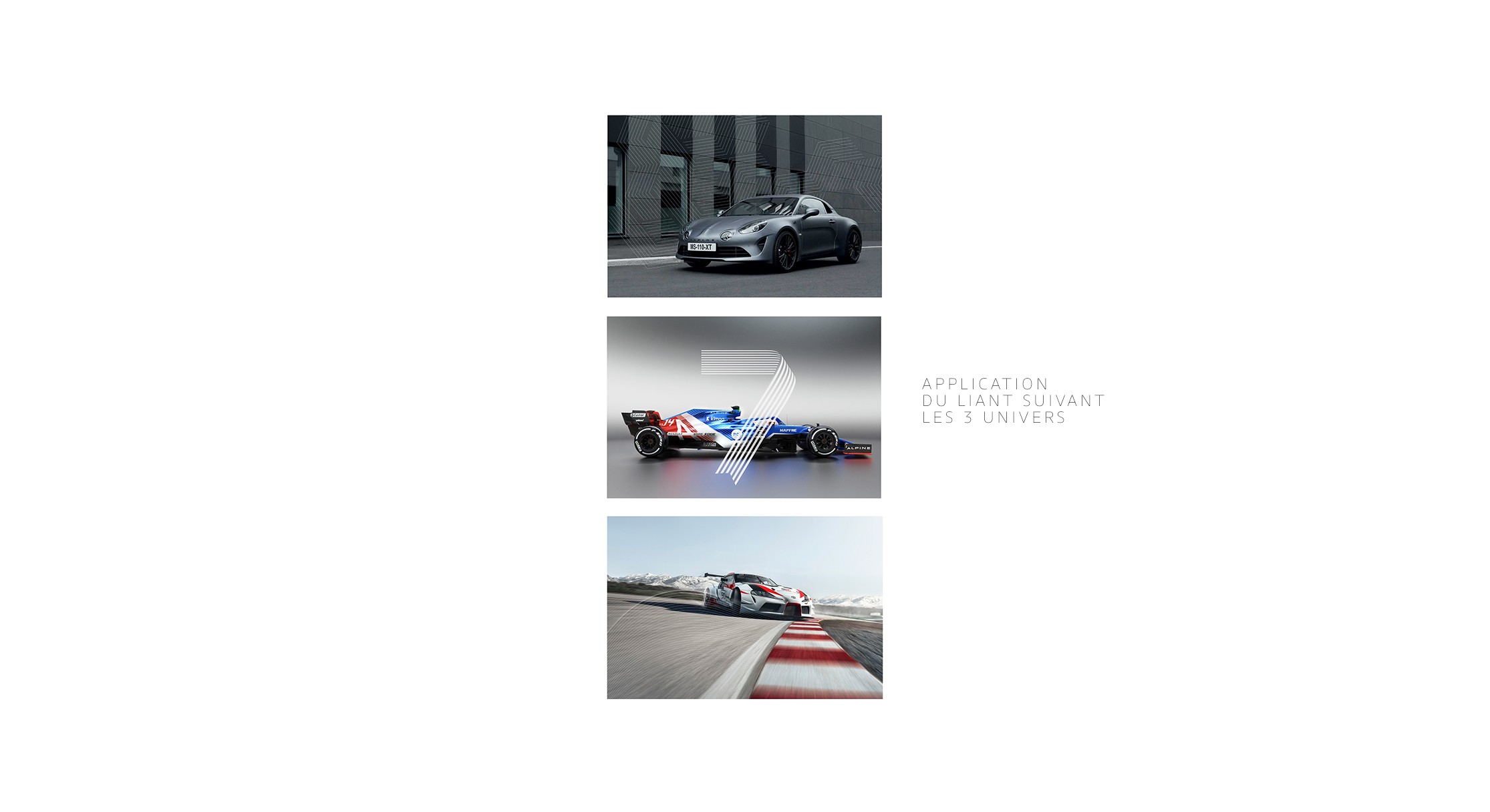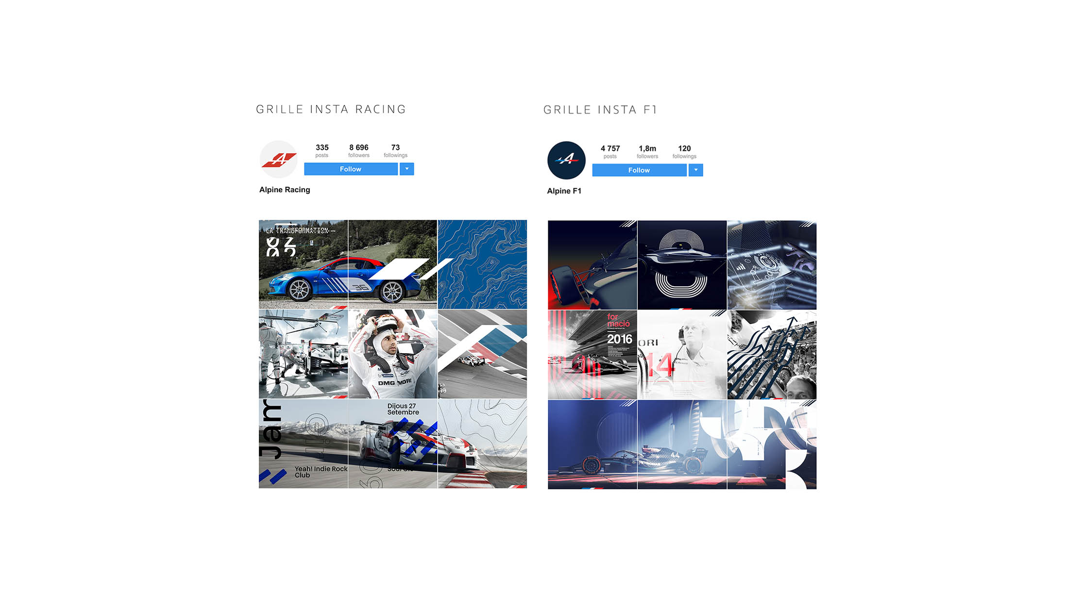 J'ai travaillé pour Alpine sur leur charte graphique RS, pour rendre plus homogène leurs posts et donc avoir une vraie cohérence entre les 3 univers, qui sont : Cars, F1 et Racing. La complexité était de trouver du liant pour ces 3 entitées. Une chose simple, efficace et graphique.