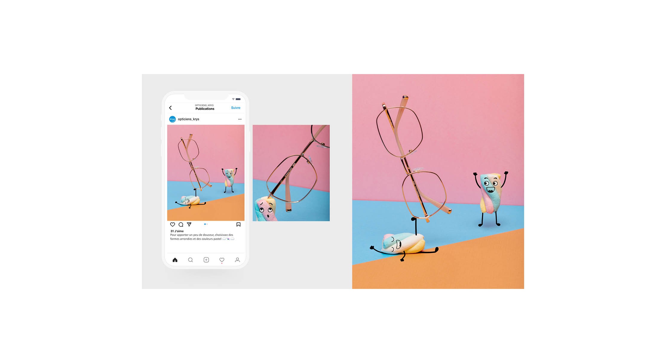 J'ai travaillé de nombreuses années pour Krys en brand design où j'ai réalisé des chartes graphiques, pages illustratives, emailings, posts, carrousels, stories et ces dernières années en tant que photographe.